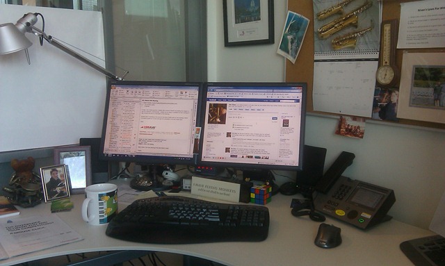 I’ve also included a picture of my desk and the door to my office. Yes, that is a Saxophone calendar above my desk. We were in the Marvel theme’d building. I’ll have to change my ‘privacy’ poster to something else for this move. Maybe I’ll move back to the film noir theme.