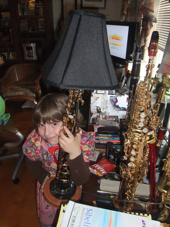 Many of us are hard pressed to throw away our damaged and unplayable instruments. So what to do with say a sax that you spent so much time learning to voice correctly and play with some level of skill? Some of us recycle these instruments into a lamp. My wife created this soprano sax lamp from an instrument that got destroyed in a theater pit band.
