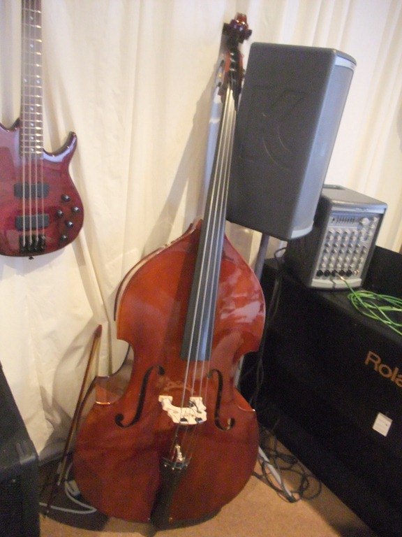 Next came the equipment, all purchased at bargain basement prices. My intent was to make it easy for the musicians to just show up and play. We’ll talk about the sheet music library in another post. The drum set is a Pearl jazz set with special hydro-skin heads, and other stuff that two of my drummer friends spec’d for me. The cymbals are sweet Zildjian ones. The keyboard is the only really pricey splurge for me, a sweet Roland piano HP-206 with an 88-key stereo multi-sampled piano sound.