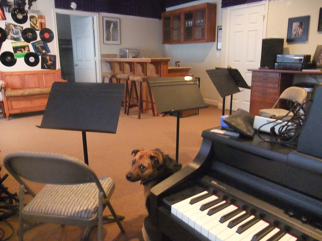 As some of you might know, I am crazy happy with my return to performance music. Some might suggest I’ve gone a little over the top; they would be right. But we really lucked into the music studio. When the house was being built in 1999, the builder came to us and suggested we change what was to be a huge crawl space into a mother-in-law apartment. He gave us an astonishing good price on it. So after renting it to my daughter’s family for years, we finally had it to our own.
