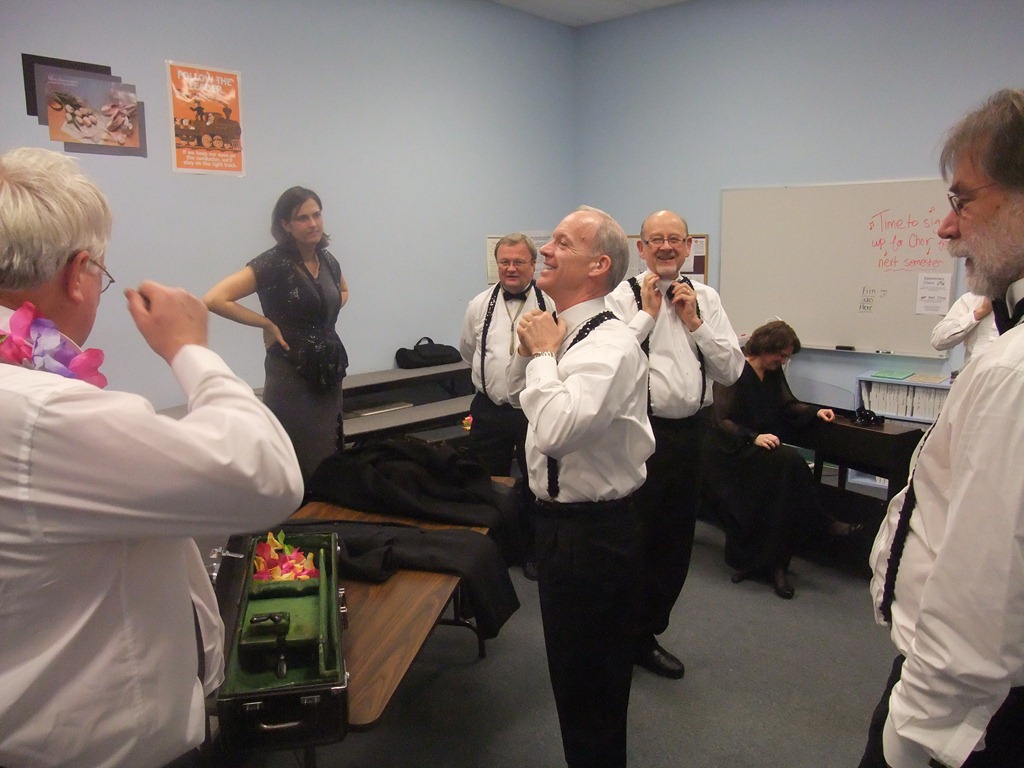 Pictured from right to left, Lise Sexton, Jamie Clarke, Doug Gallagher, and the singers including Robin Hilt in red.