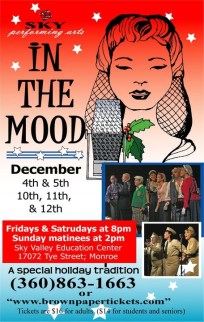 This year wife Suzy (tenor, clarinet), friend Bob (bass bone), friend Bill (lead trumpet), and I (alto & bari sax, sop & bass clarinet) will be a part of the “In the Mood” big band. It is a theater show based on the USO performances of the past. Music, vocalists, comedian, and lots of fun. I wonder if the cat will run through the sax section again this year?