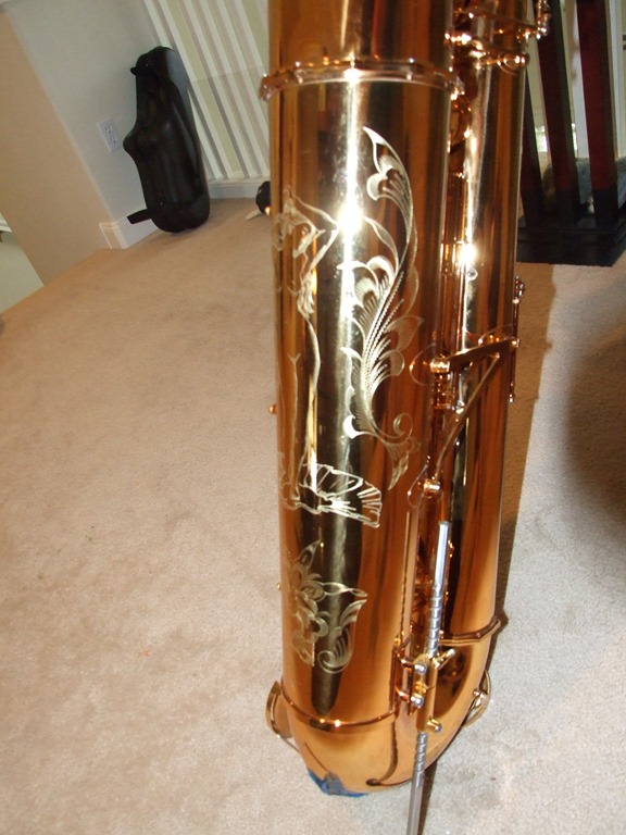 3. Expensive: Good bass saxes tend to be expensive. You can plan on spending an average of $15,000 for a vintage bass sax and it will need some maintenance. For a modern Eppelsheim bass sax, you can expect to pay $25,000 and up depending upon adding extras. For example, my bass sax is keyed to low A and has a Venus de Milo engraving.