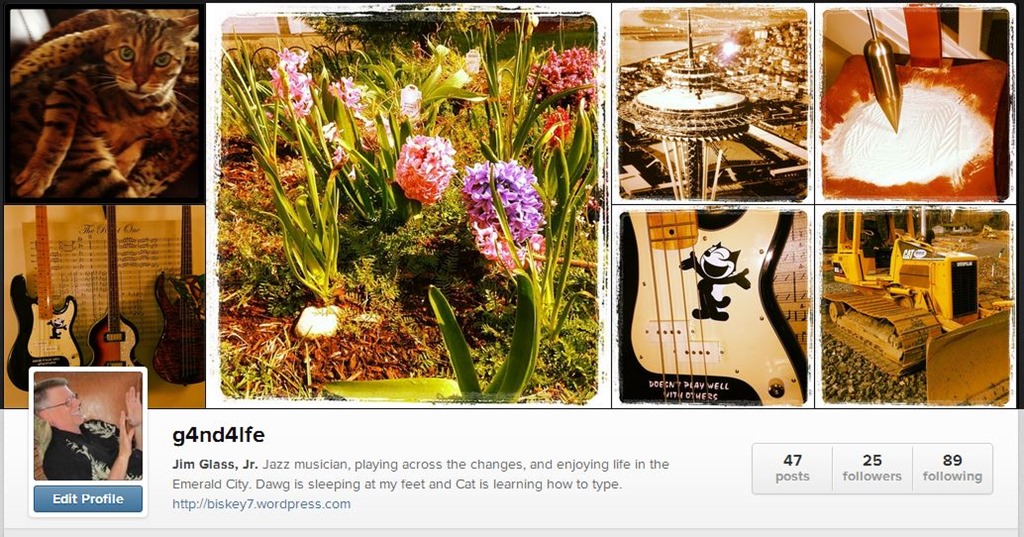 So on my first day I installed Instagram and started sharing pictures from my iPhone. It is brain-dead easy to take a picture, create a look by changing the tone and colors, add a lovely frame and post to my Instagram page. When I want to, I can also post to my Facebook and Twitter worlds at the same time.