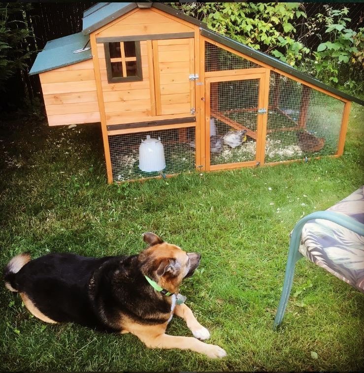 The chickens are inquisitive, happy to eat from our hands, run to us when we call them, and on occasion will follow us around the backyard. We hope to start getting eggs from them when they are old enough. The average we’ve been told is 2 to 3 a week per bird. Yum!