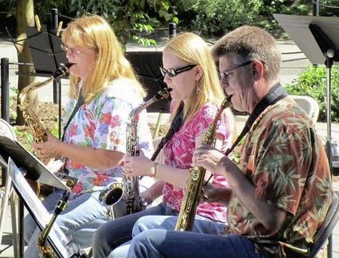 If you attend the performance, you can expect to see anything from a soprillo to a bass sax. That’s a lot of hornage. We split our time with a flute choir and are surrounded by a park that includes a salmon run, an arboretum, and sometimes, vintage car shows.