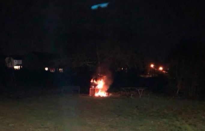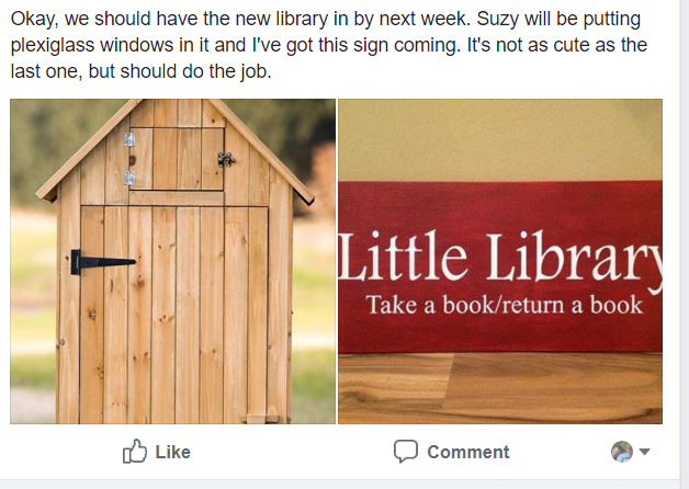 Travis: Some fucking hooligans torched the community library box. The tree looks damaged too.