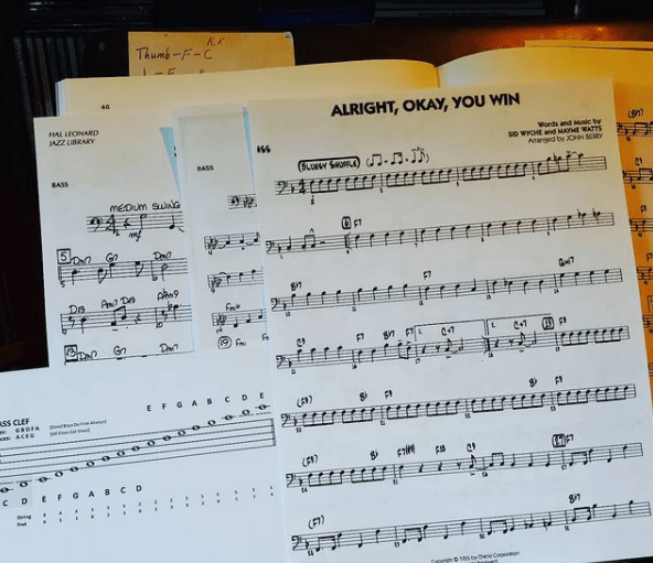 I think we might play Satin Doll next year (full band arrangement), but I’m still debating others. You can find partial recordings of two of these combo pieces (not Satin Doll) online. I generally play along to a backing track of Satin Doll and have to fake through the arrangement, but gives me a chance to get the rhythm down. “It Don’t Mean A Thing” is the most challenging because of the tempo. Enjoy.