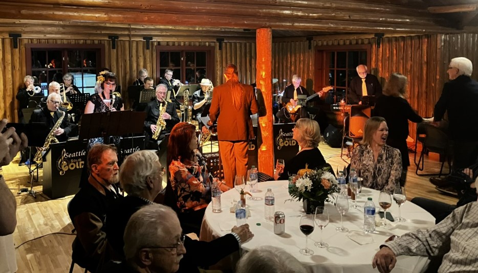 The room was kind of small for a big band, but we made it work for our bandies. How could we not? So during the birthday speech, the guest of honor got down on his knees and proposed to his long-time girlfriend! I kid you not. So a ULC minister (I was one too) stepped out of the crowd and performed a short and funny marriage. So much fun and called upon us to play the wedding march.