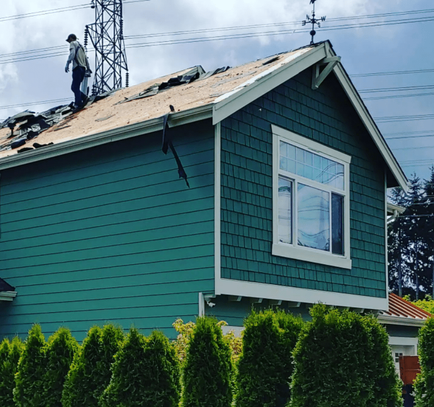 We had to replace nine 4X8 foot plywood pieces because the leakage damaged them. It was amazing watching the repairmen schlep the wood up the ladder without a lift. The home across the street had huge lift equipment to lift the shingles, wood, and such to the top of that house. There was no metal flashing on our original roofing job. Now we have metal flashing all away around the roof and in the joints where the roof changes planes, and such.